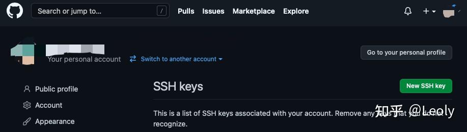 我们将 id_rsa.pub 中的 ssh code 复制到 GitHub -> 头像 -> setting -> SSH and PGP Keys 中。